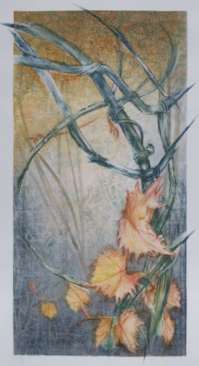 Pertinacious - Painterly drypoint, relief, monoprint, 2022; Akua intaglio on Arnhem 1618; 12"x24"