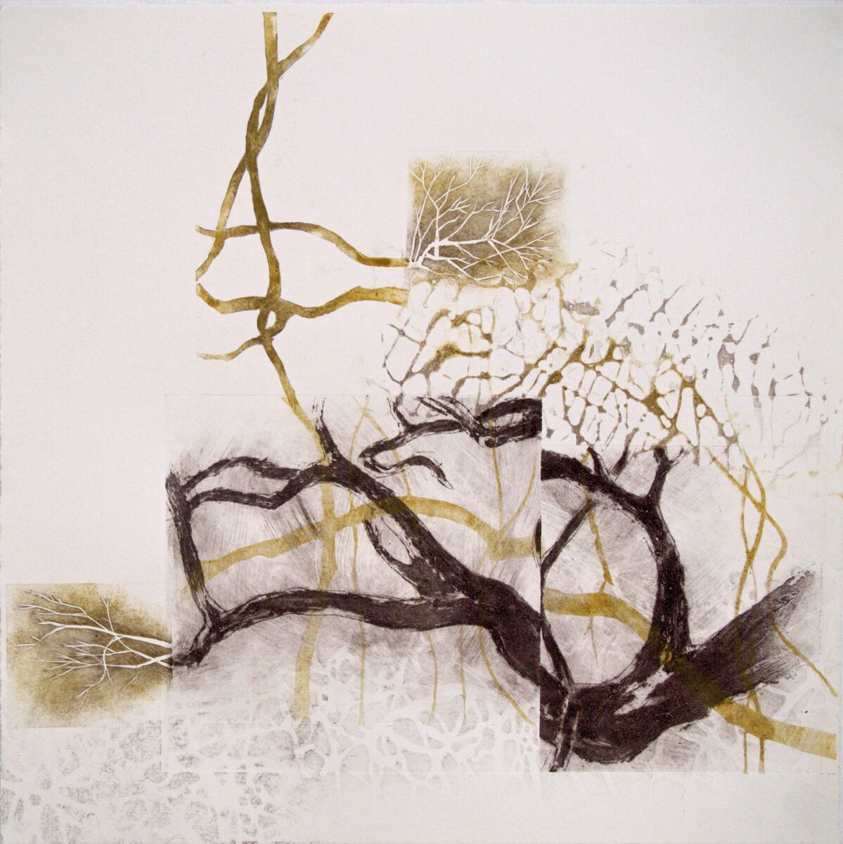 To reach beyond - drypoint, relief, 2023; Akua intaglio on Arnhem 1618; 18"x18"