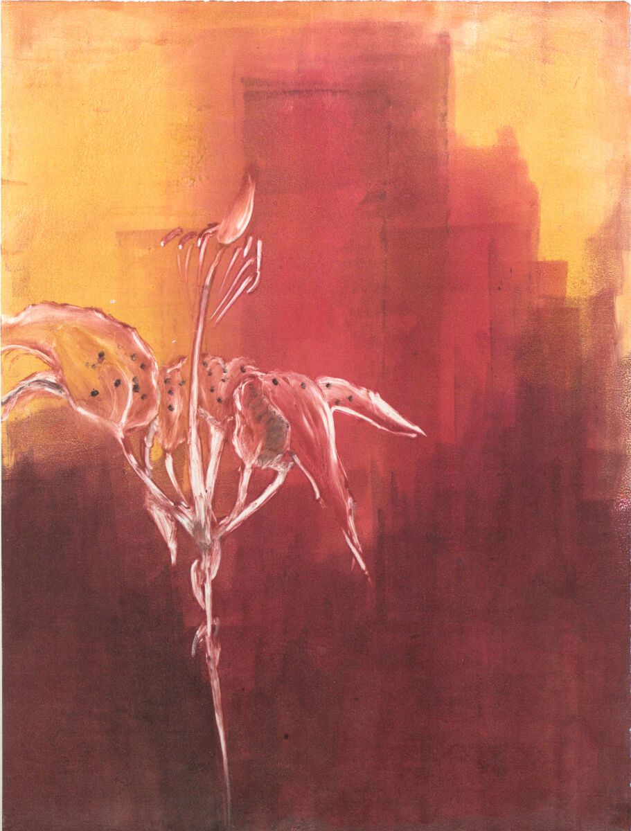 Catesby lily - monotype, 2022; Akua intaglio on Arnhem 1618; 12"x16"